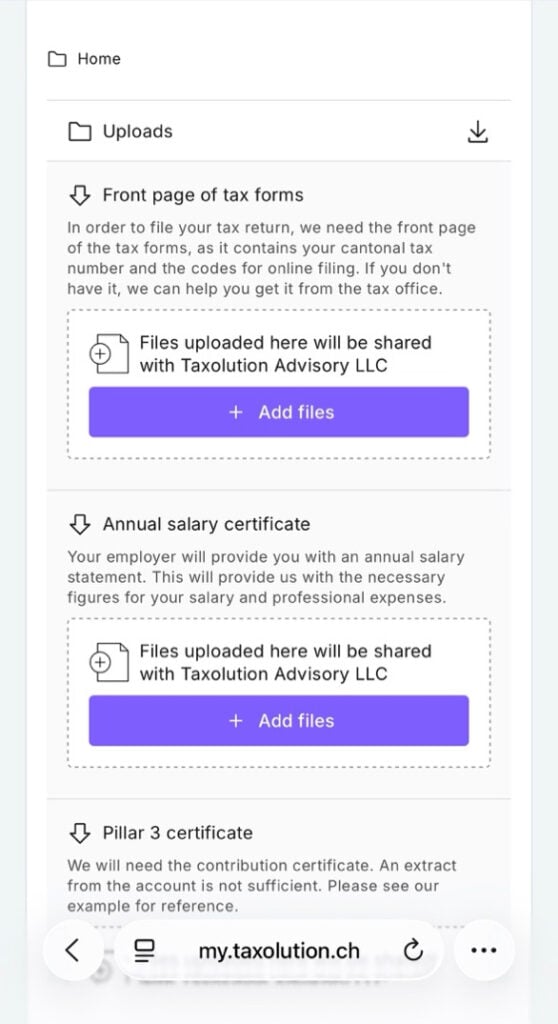 The MyTaxolution web portal simplifies the tax return filing process, ensuring it’s easy to do and providing greater clarity for expats navigating Swiss taxes.